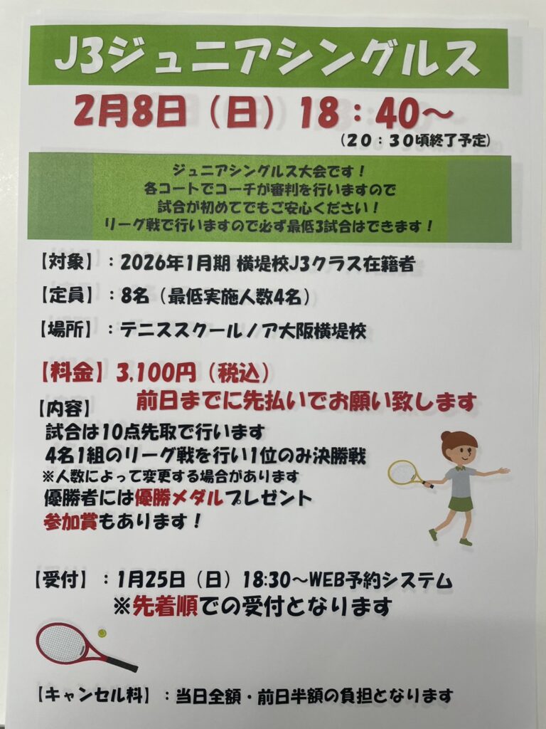 いよいよ、次の日曜日2/8にJ3シングルスがおこなわれます!